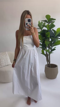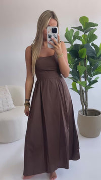 De Sophie Tie-Back Maxi Dress is de perfecte combinatie van elegantie en comfort. Deze luchtige maxi-jurk valt net boven de enkels en is ontworpen met een vrouwelijke pasvorm die flatteert van maat XS tot en met L dankzij de verstelbare striksluiting op de rug. Gemaakt van een lichtgewicht, ademende katoenmix, is deze jurk ideaal voor zowel zomerse dagen als stijlvolle avondjes uit. Verkrijgbaar in klassiek wit en warm chocoladebruin.